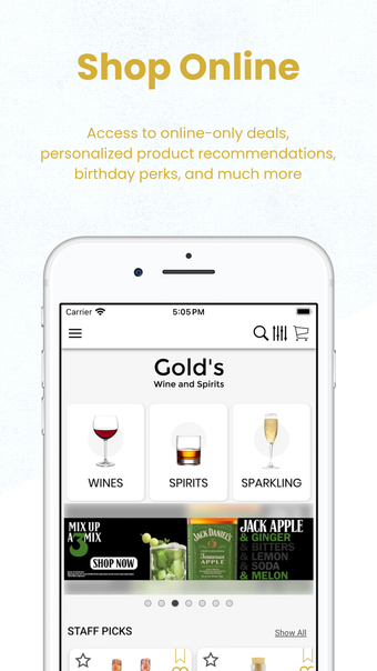 제품 탐색 외에도, 이 앱은 배달 또는 픽업 주문 옵션을 제공하여, 좋아하는 음료를 즐기고자 하는 사람들에게 실용적인 도구가 됩니다. 사용자 친화적인 인터페이스를 갖춘 Golds Wine and Spirits 앱은 쇼핑 경험을 향상시키며, 와인과 주류 애호가들의 필요를 충족시킵니다.